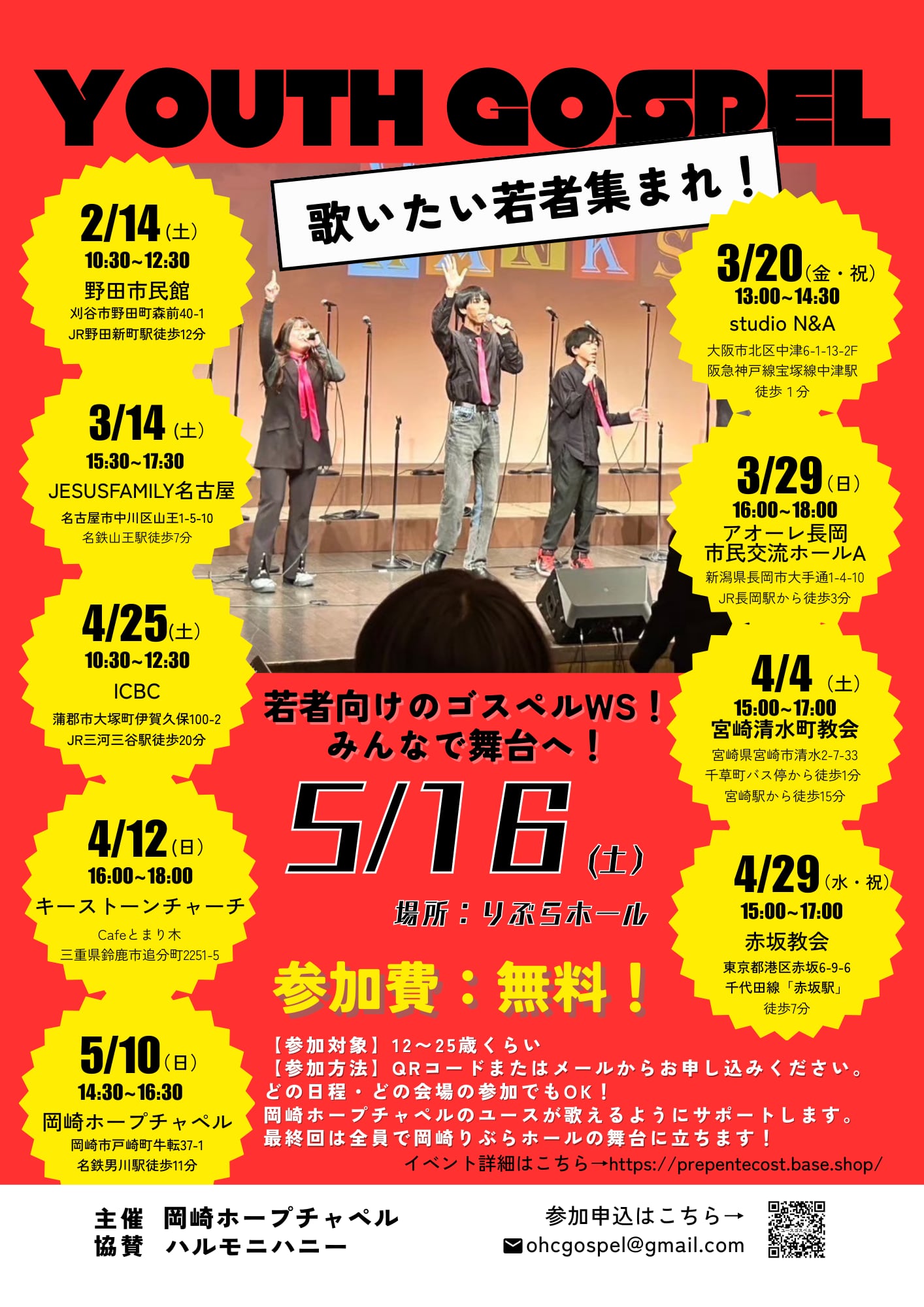 ハルモニハニーの提供により若者のゴスペルワークショップが無料で開催できることになりました!